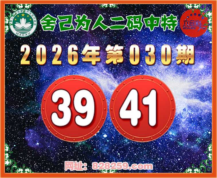 030期:【舍己为人】二码中特⚽【39.41】开:41