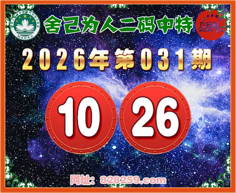 031期:【舍己为人】二码中特⚽【10.26】开:26