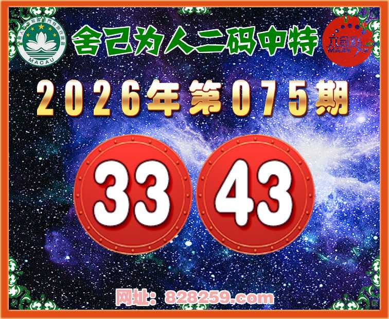 075期:【舍己为人】二码中特⚽【33.43】开:33