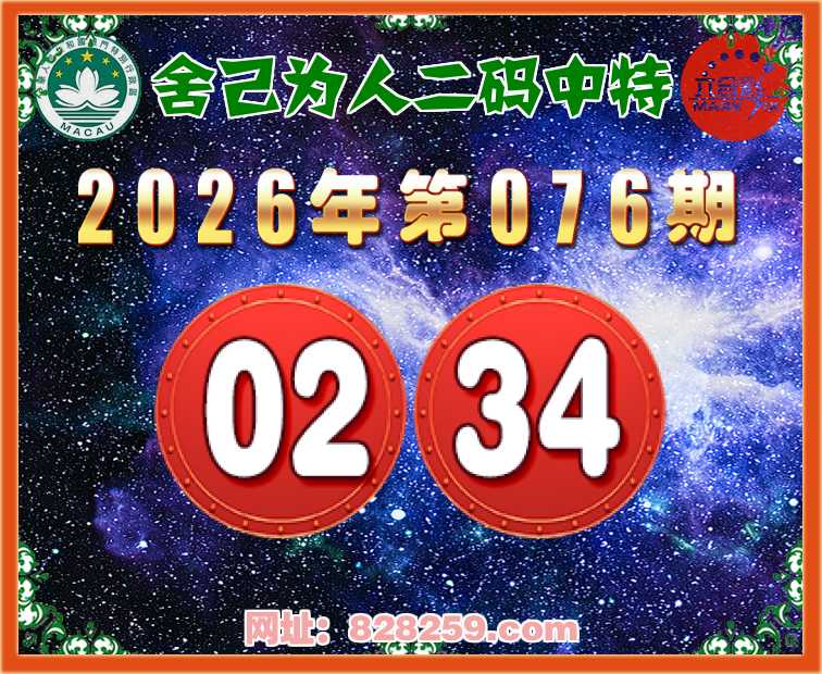 076期:【舍己为人】二码中特⚽【02.34】开:02