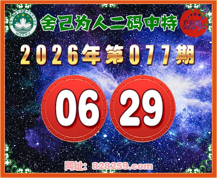 077期:【舍己为人】二码中特⚽【06.29】开:29