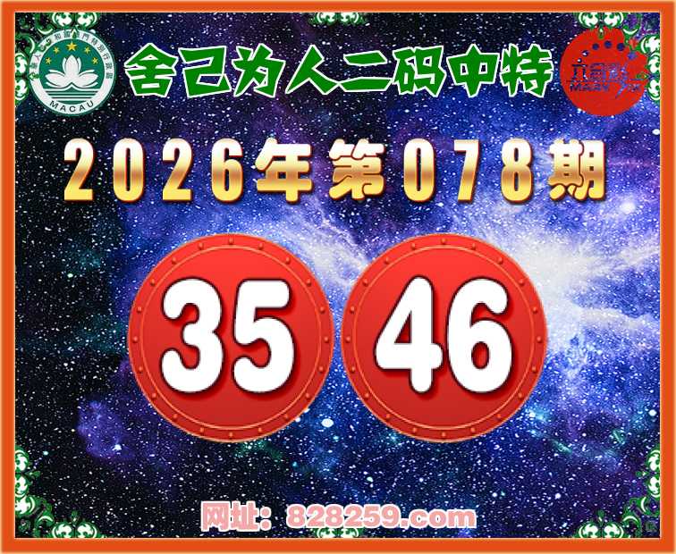 078期:【舍己为人】二码中特⚽【35.46】开:46